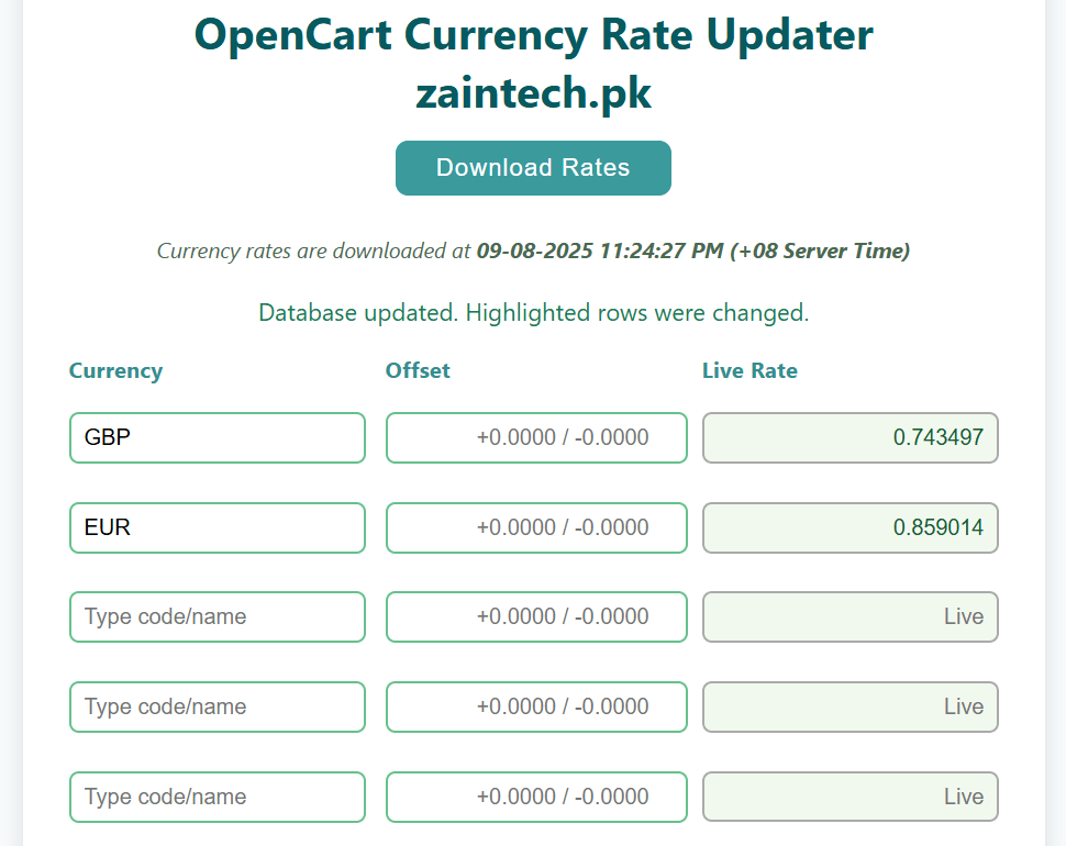 - Manual currency updates without logging into OpenCart admin