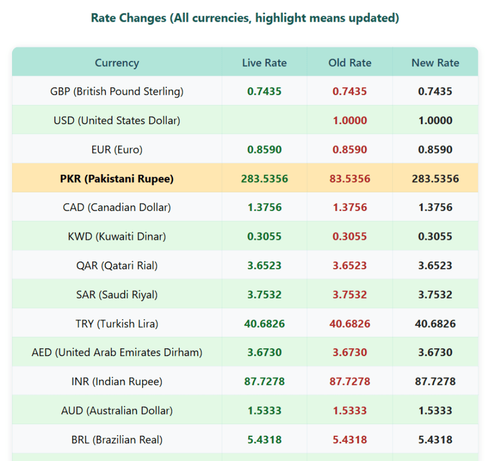- Supports updating all currencies available via currencylayer.com